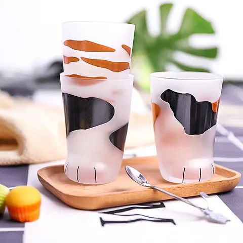 Creative Cute Cartoon Cat Paw Glass 300ML Eco-friendly Travel Mug with Straw Cap for Water Milk Juice & Cold Drinks